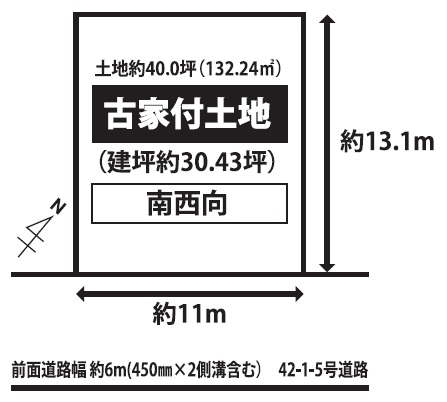 | 販売価格 380万円 | 土地面積 | 公簿132.24㎡ | | 坪数 | 約40.00坪 | | 地目 | 宅地 | | 建ぺい率 | 60% | | 容積率 | 200% | | 前面道路 | 南西側 幅員約6m | | 所在地 | 和歌山市湊1820-177 | | 交通 | 和歌山バス「土入橋」停 まで徒歩約7分 | | 学校区 | 和歌山市立湊小学校 和歌山市立河北中学校 | | 備考 | 古家付土地 間口約11m |